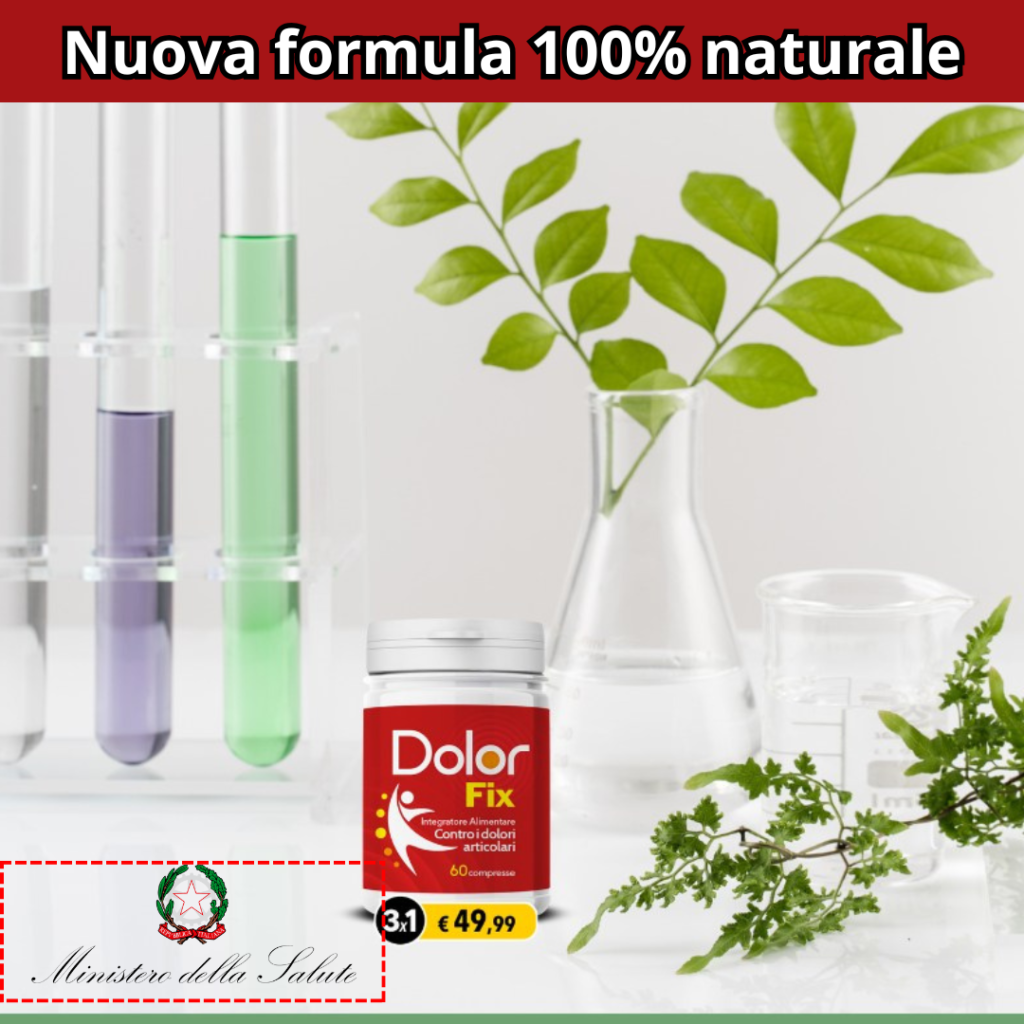 La nuovissima formula 2025 di Dolor Fix™ è composto da ingredienti naturali selezionati dai migliori medici italiani: Zenzero ad azione antinfiammatoria, Salice Bianco ricco di salicina, Glucosamina e MSM che nutrono cartilagine, ossa e tessuti, e Artiglio del Diavolo che sostiene il comfort articolare riscaldando dall’interno le tensioni muscolari.